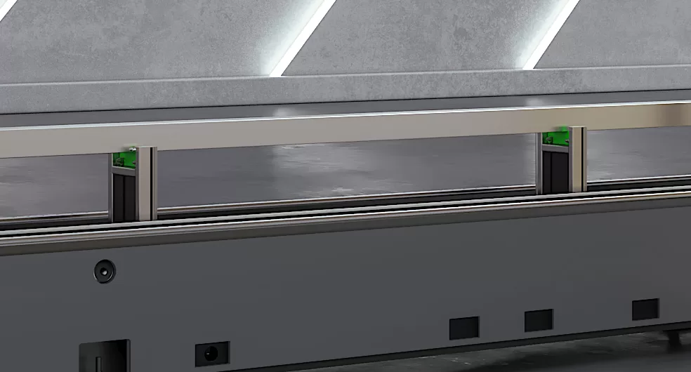 - Le Vento Flex est disponible en formats 1530 mm x 3050 mm, 2030 mm x 4050 mm ou 2030 mm x 6050 mm, avec une table navette automatique double.